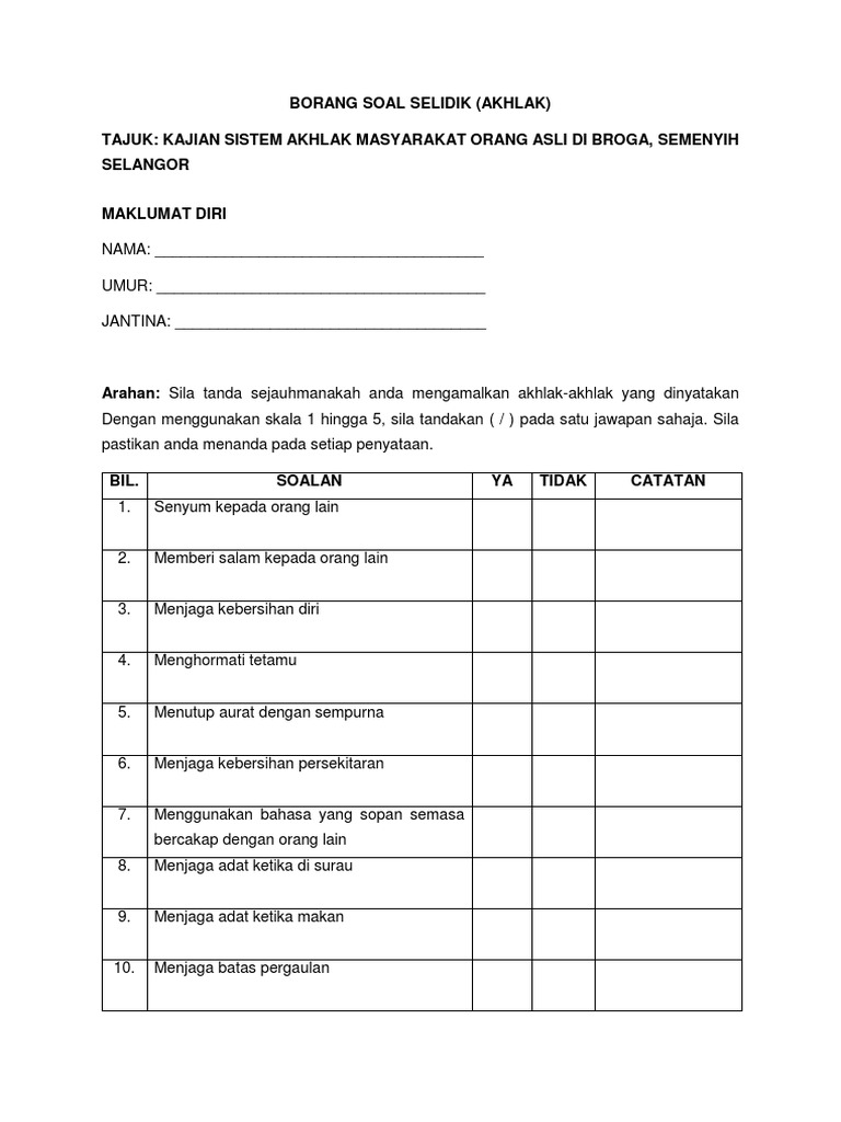 Borang Soal Selidik Tentang Penghayatan Solat Pdf