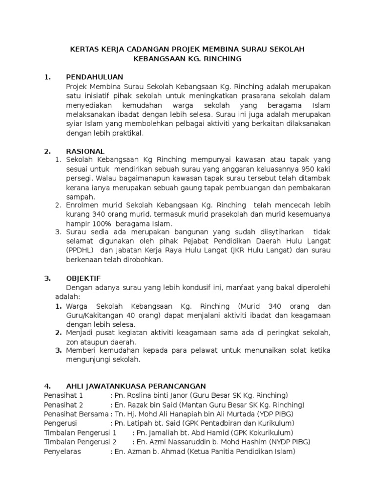 Kertas Kerja Cadangan Projek Membina Surau Skkr Pdf