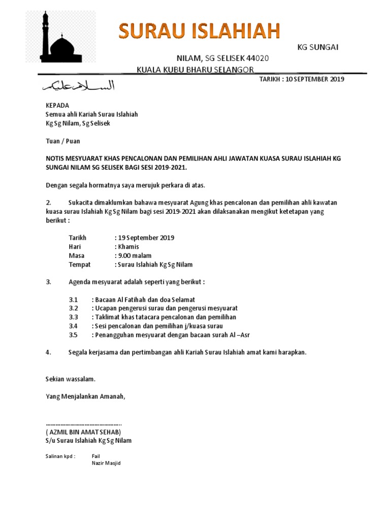 Notis Mesyuarat Khas Surau Islahiah Pdf