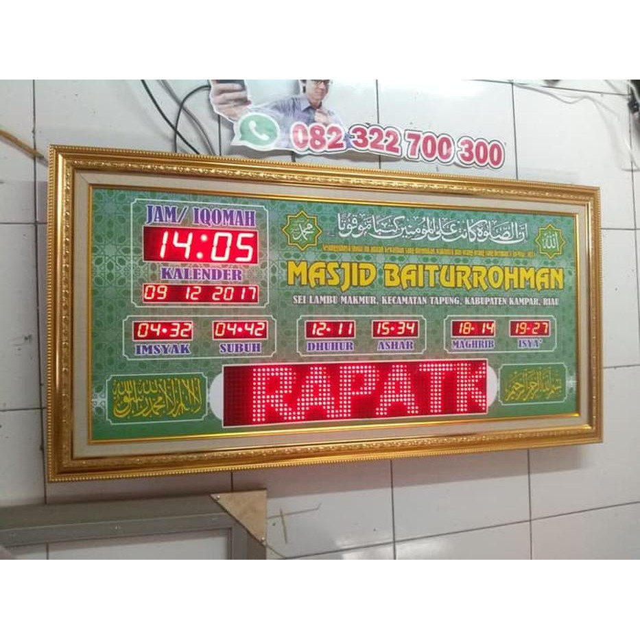 Jam masjid Jadwal sholat LED running text 130cm x 20cm merah mesjid. Jam Timer Iqomah 7 Segment. Service mesin service jarak jauh pergantian komponen dll Gratis Desain.